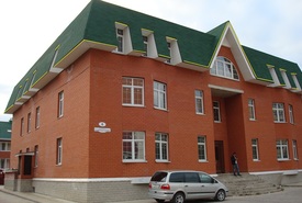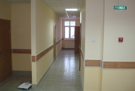 Задача: Переоборудовать административное здание в Детскую поликлинику. Смонтировать внутренние инженерные коммуникации. Пристроить пандус и заднее крыльцо, благоустроить территорию.
